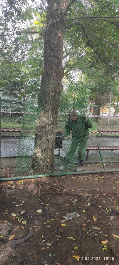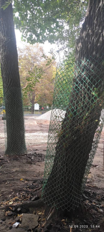 В Липках деревья защитили сетками на время строительства новой детской площадки