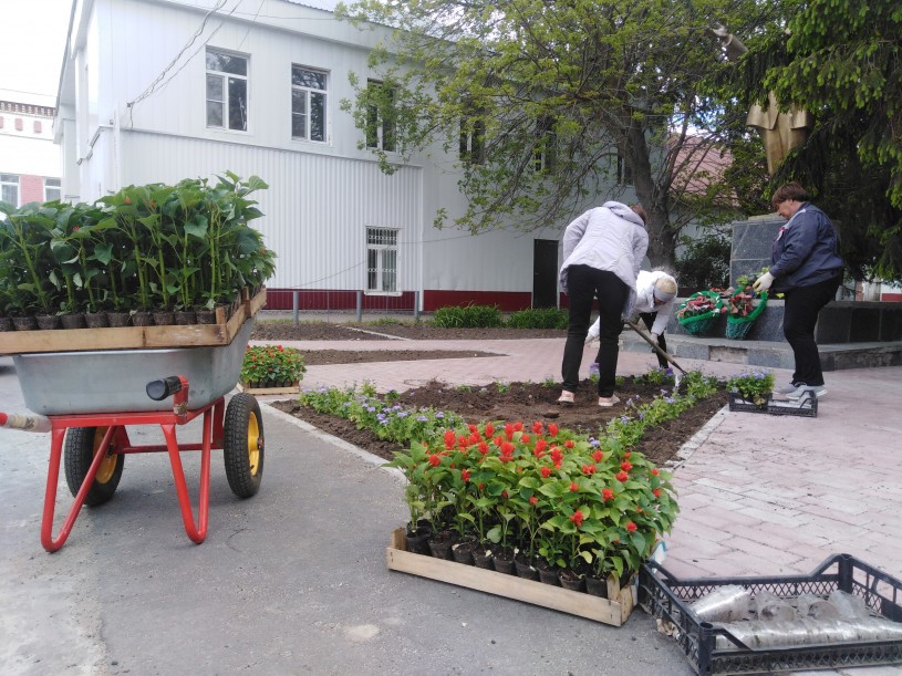 В Лысых Горах озеленяют цветники и клумбы