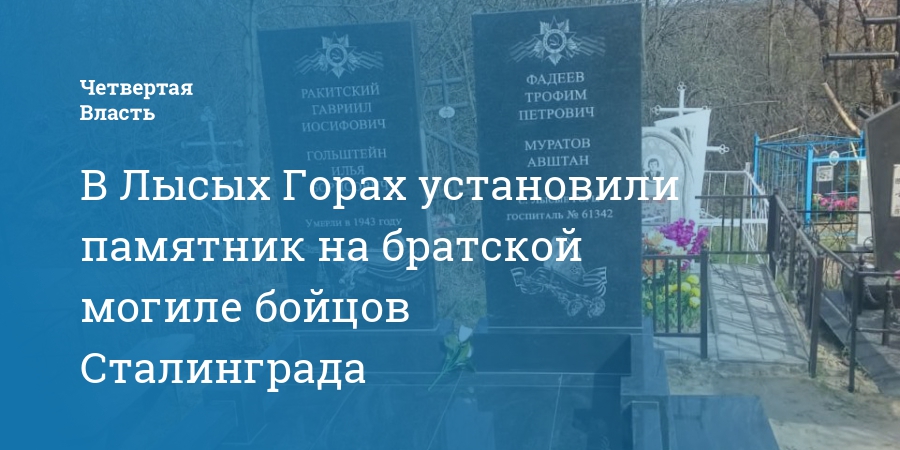 По словам чиновников, в братской могиле захоронены четыре бойца Красной армии, умершие от ран в госпитале №61342. Во время Великой Отечественной войны госпиталь располагался в здании школы №1 поселка Лысые Горы. В нем спасали солдат, получивших ранения в Сталинградской битве.