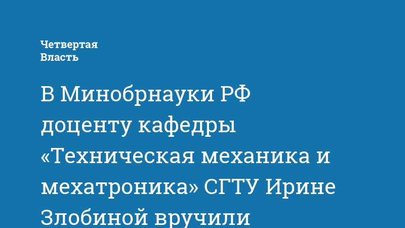 В Минобрнауки РФ доценту кафедры «Техническая механика и мехатроника» СГТУ Ирине Злобиной вручили премию ВОИР-2021