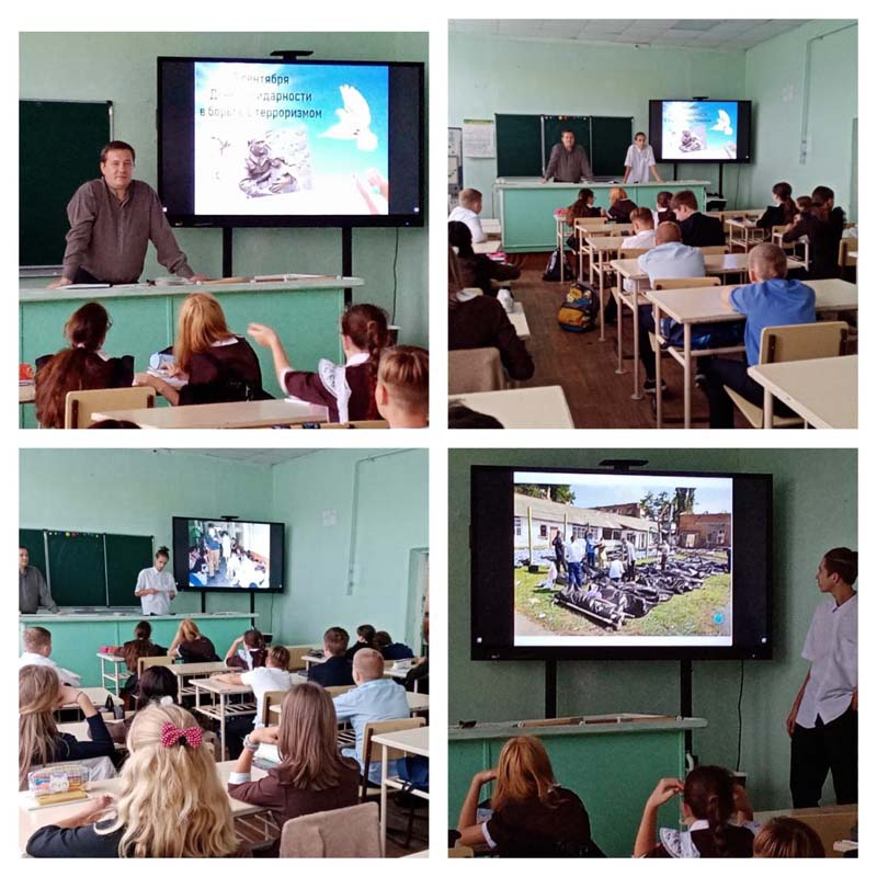 В этот день ребята вспоминали трагические события в Беслане, которые унесли жизни свыше сотни школьников, учителей. Состоялись классные часы с демонстрацией короткометражных видеофильмов и трогательных презентаций.