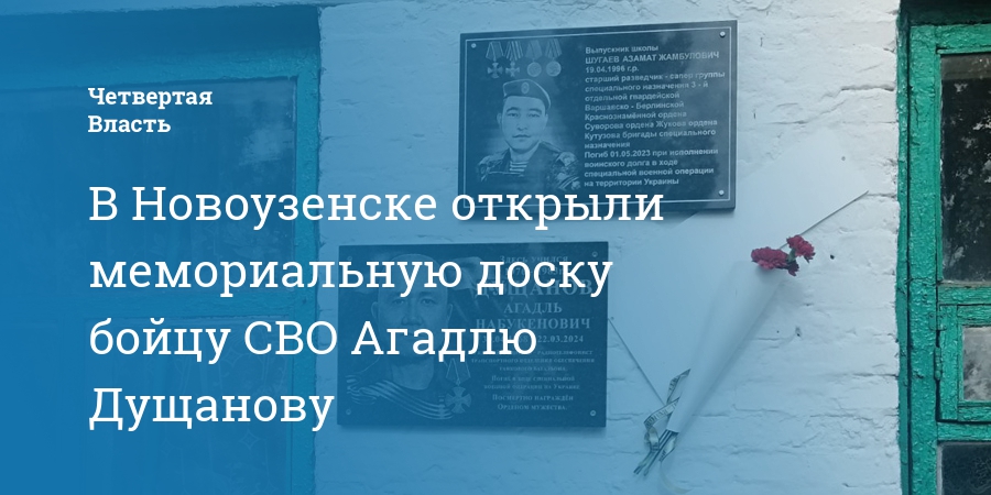 В Новоузенске Саратовской области открыли памятную доску участнику спецоперации Агадлю Дущанову. Об этом сегодня, 5 июня, в соцсетях рассказал глава района Андрей Опалько.