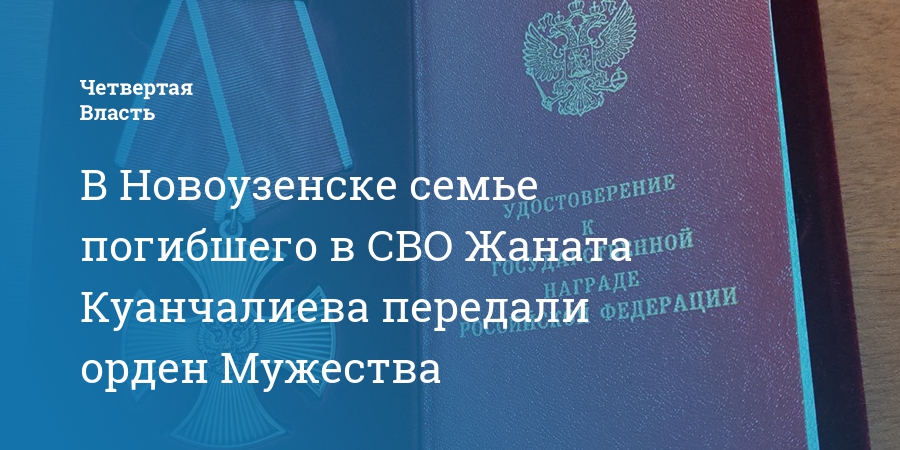 В Новоузенском районе Саратовской области родителям погибшего в ходе спецоперации Жаната Куанчалиева вручили орден Мужества. Об этом сообщил в своем телеграм-канале глава района Андрей Опалько.