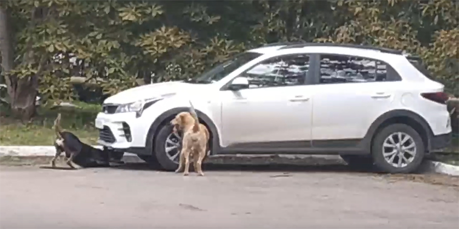 По словам горожанина, нападение собак на кроссовер «Киа Рио» случилось на 1-м Станционном проезде, на территории железнодорожной больницы. На кадрах видно, что животные ожесточенно грызут бампер иномарки и переднее колесо. Автор ролика сказал, что дворняги успели оторвать госномер машины.