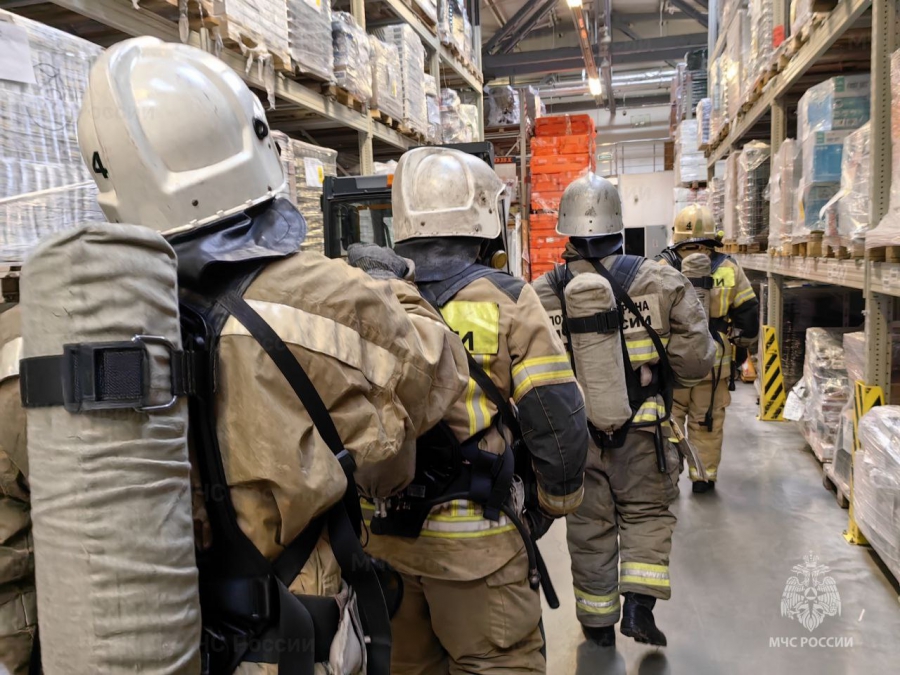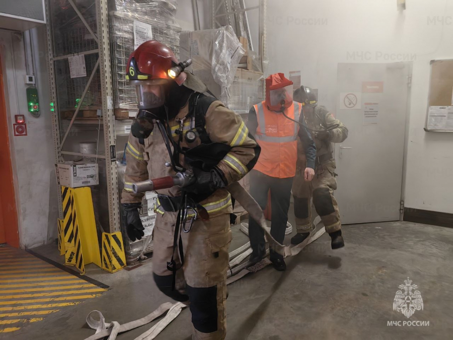 В «Оранжевом» пожарные тренировались тушить склад и «спасли» трех человек