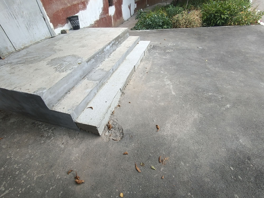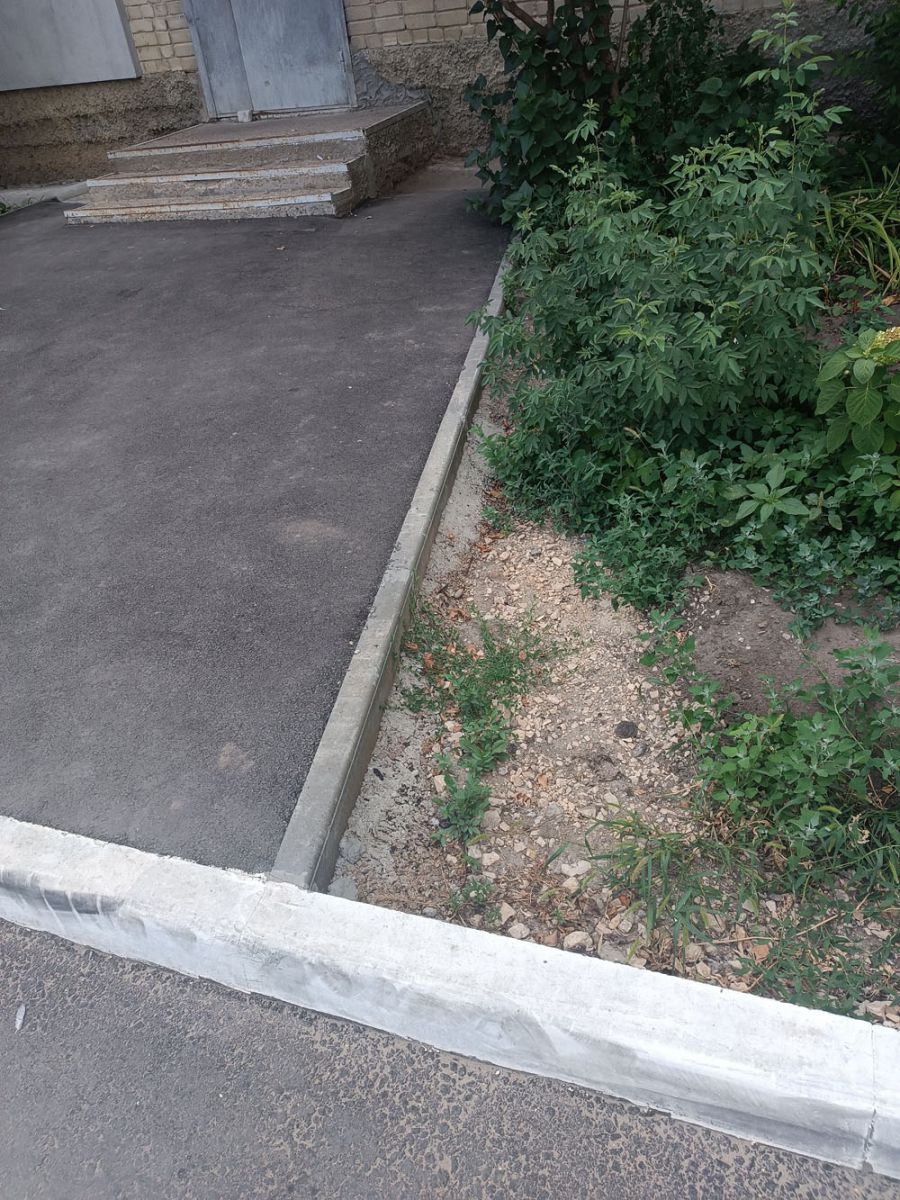Совсем небольшие дефекты в виде разрушившегося и треснувшего асфальтобетона на примыкании к крыльцу 7-го и 6-го подъездов явились следствием подъема входных групп, в результате чего под асфальтом оказалась нижняя ступенька лестницы. Из-за того что над ней слой асфальта оказался слишком тонким, появились незначительные дефекты.