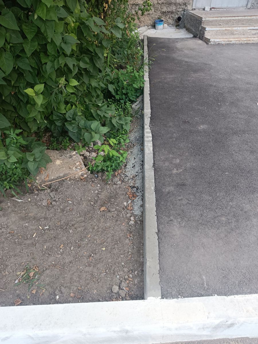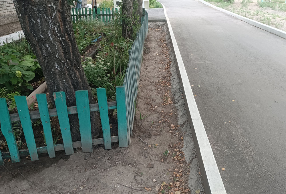 Незакрытый землей бетонный замок бордюра портит общее впечатление от, в целом, качественно отремонтированного двора.