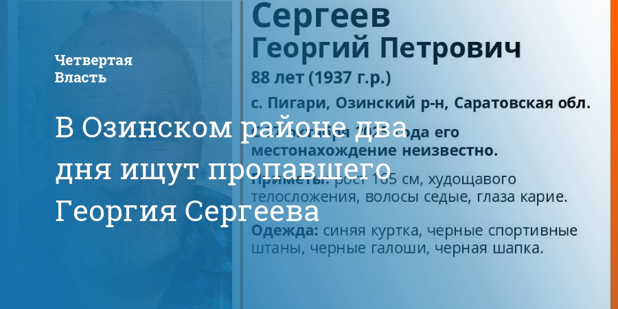 В Озинском районе Саратовской области два дня ищут пропавшего без вести Георгия Сергеева. Об этом рассказали волонтеры поискового отряда «Лиза Алерт».