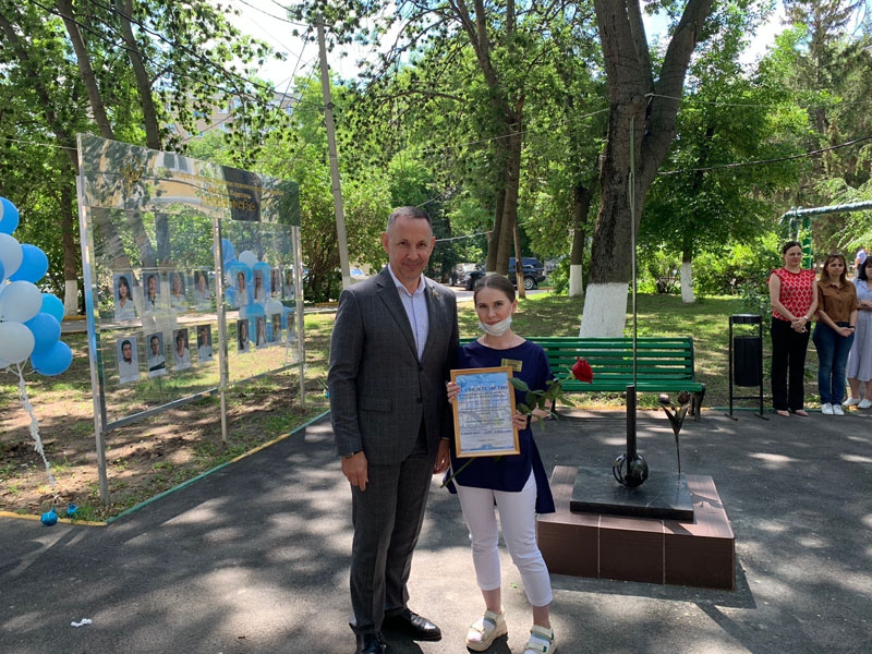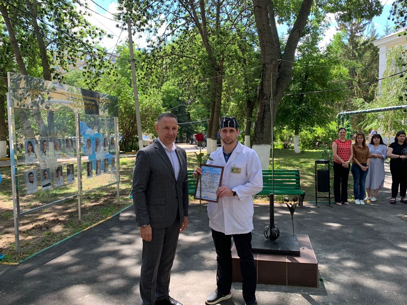 Далее состоялась церемония вручения сертификатов о занесении на Доску Почета сотрудникам за высокие результаты в профессиональной деятельности и личный вклад в развитие учреждения. На доску почета занесены 16 медицинских работников.