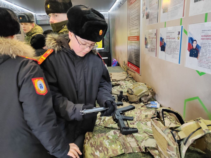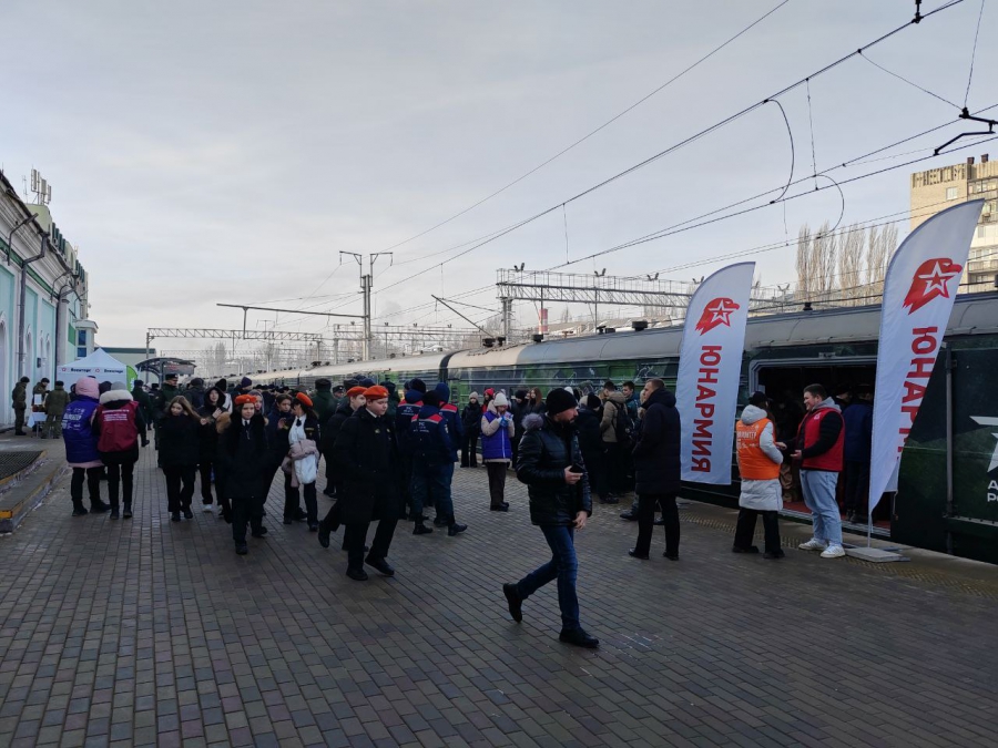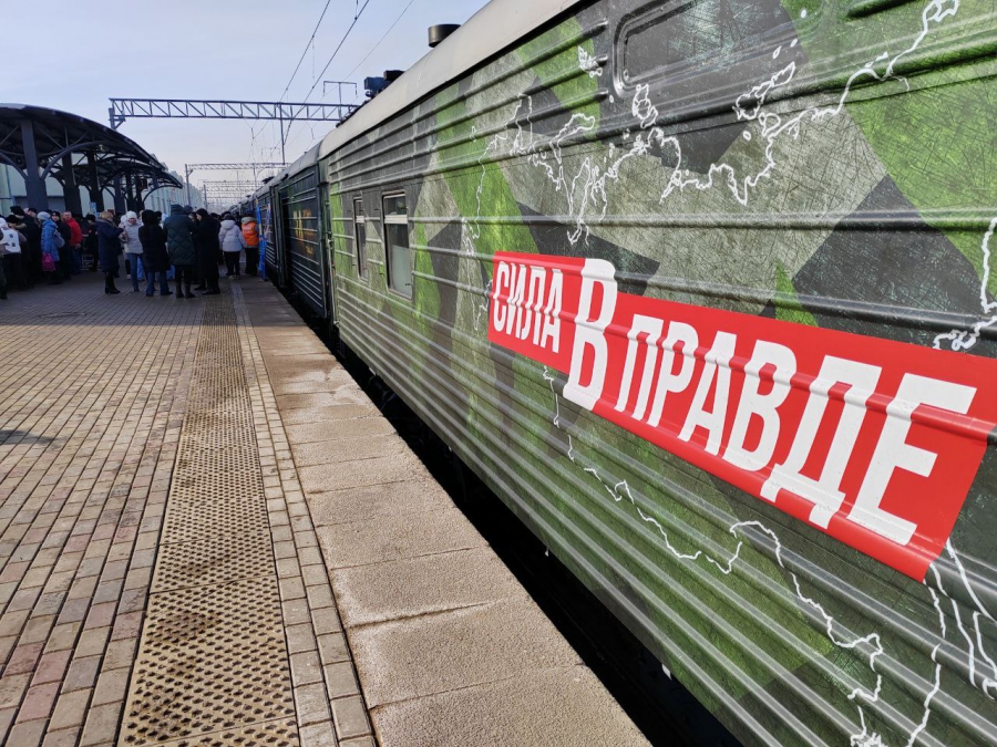 Приезд поезда проходит в рамках всероссийской акции «Сила в правде». В составе поезда было несколько тематических вагонов. В каждом из них собрали экспозиции по разным видам войск: Сухопутных, Воздушно-космических сил, Военно-морского флота, Воздушно-десантных войск, Главного военно-политического управления ВС РФ. Отдельные вагоны посвятили деятельности Департамента культуры Минобороны России и Юнармии.