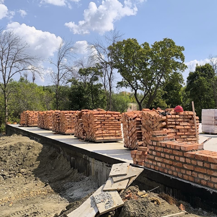 В настоящее время выполнено устройство фундамента и плит перекрытия, а также проложена канализация. По информации минздрава, подрядчик приступил к возведению кирпичной кладки стен здания. Параллельно с этим проходят работы по организации подпорной стенки. Залито основание, выполняется сварка и обвязка сеток каркаса, выставляется опалубка.