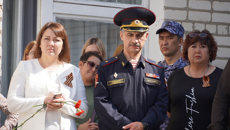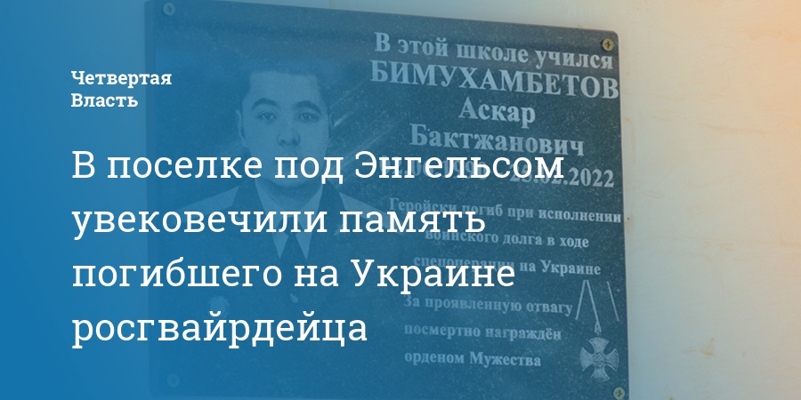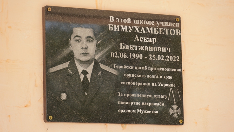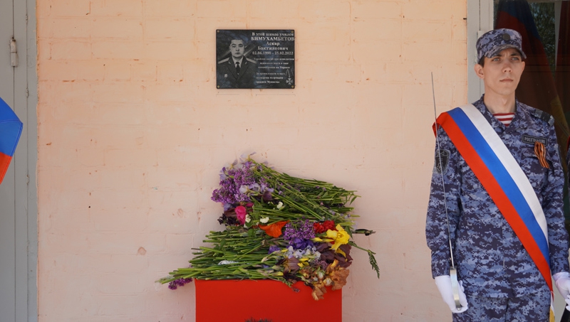 В Саратовской области в честь военнослужащего Росгвардии Аскара Бимухамбетова, погибшего в ходе специальной военной операции на Украине, установлена мемориальная доска.