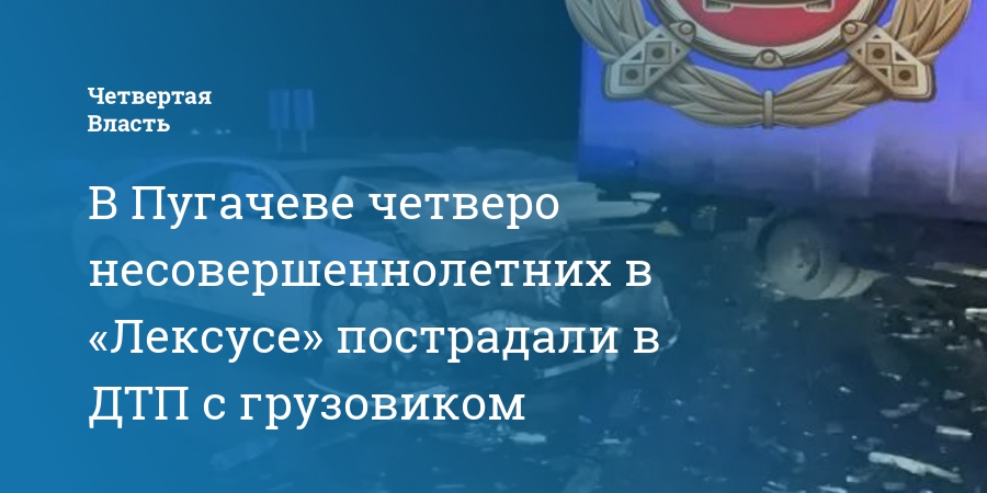 - 4 В Пугачеве четверо несовершеннолетних в «Лексусе» пострадали в ДТП с грузовиком
