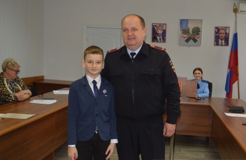 Правоохранители отметили достойный поступок члена движения «Юный друг полиции», вручив ему сувенир и благодарственное письмо за неравнодушие к чужой беде.