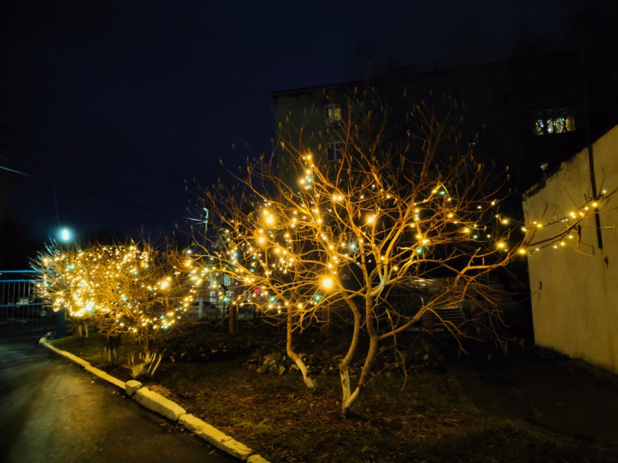 Жители Советского района активно создают новогоднюю атмосферу - они украсили здания учреждений и предприятий праздничными атрибутами и инсталляциями. На окнах сверкают гирлянды, а елка светится в темное время суток всеми цветами радуги. В Красноармейском районе новогоднюю красавицу украшают крупные золотые и красные шары, а на ее верхушке установлена резная звезда. Также жители села Сплавнуха украсили дома множеством гирлянд к предстоящему празднику, и они приобрели сказочный облик.