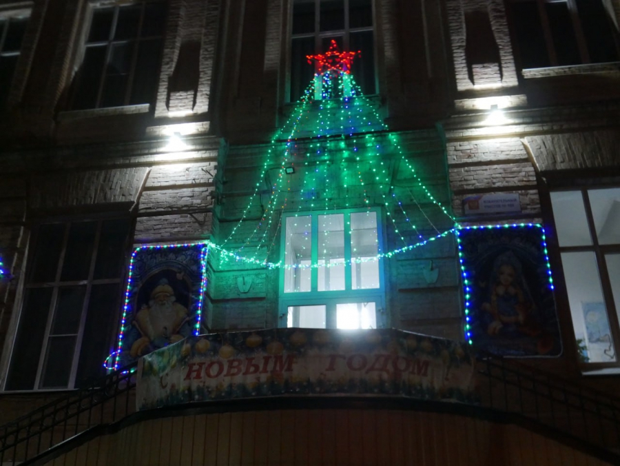 В Вольске школы и детские сады украсили крыши гирляндами, а окна - новогодними узорами.