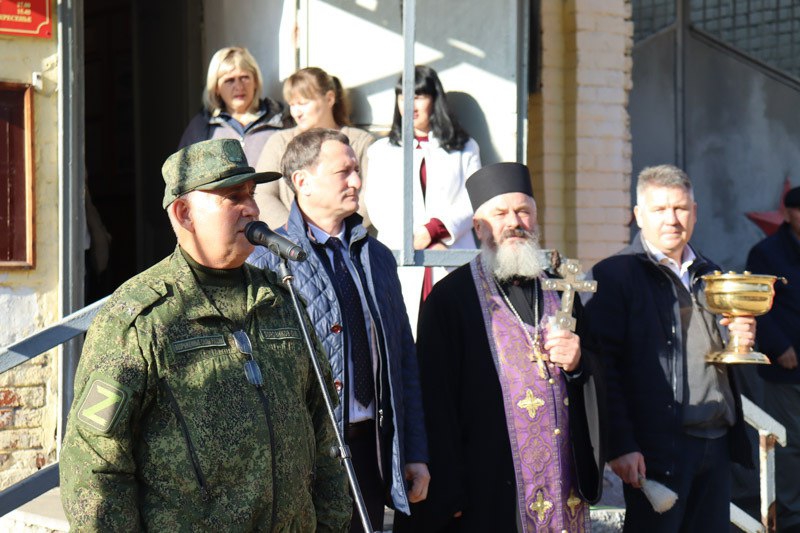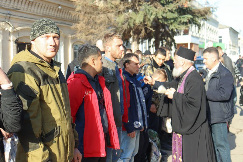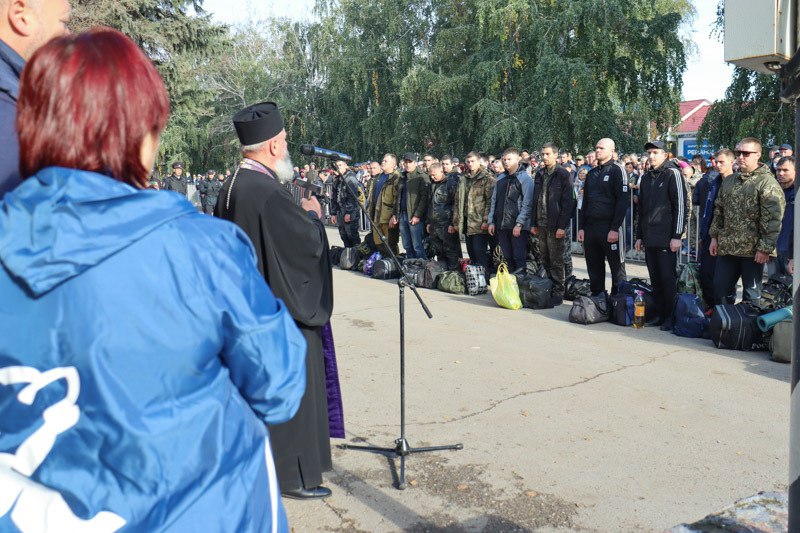 В Питерском районе мужчины также отправились к месту учебной подготовки, а затем пополнят ряды Вооруженных сил РФ. Проводить земляков пришли родственники, друзья, соседи и просто неравнодушные жители. Настоятель храма во имя Архангела Михаила Протоирей Сергей Ясиновский окропил святой водой наших ребят и вручил каждому иконы Георгия Победоносца.