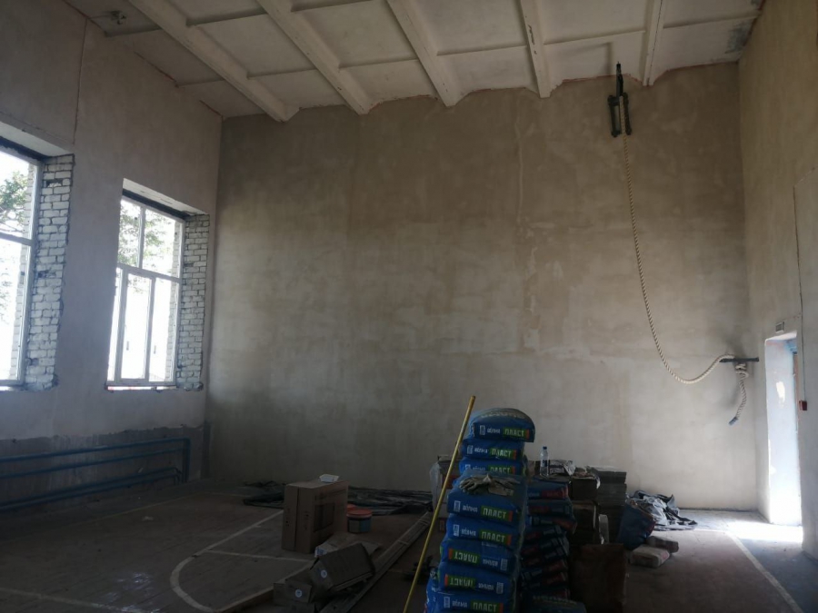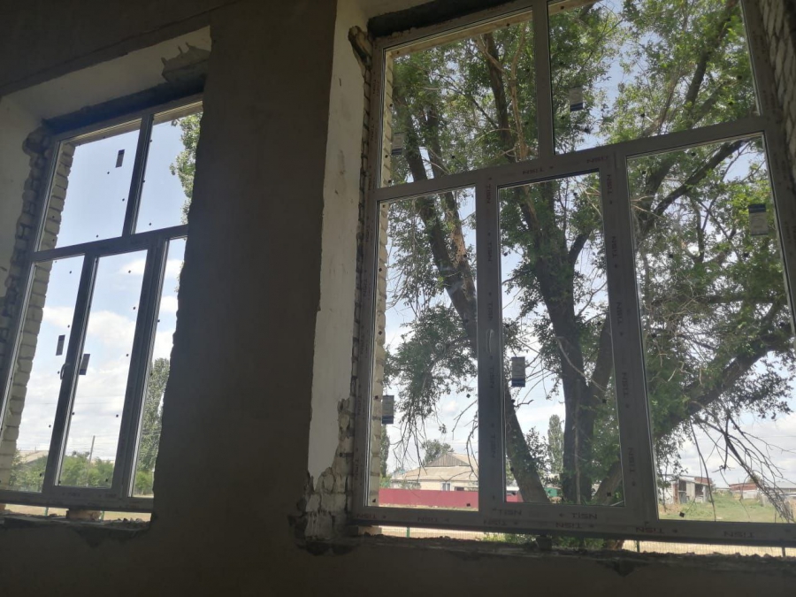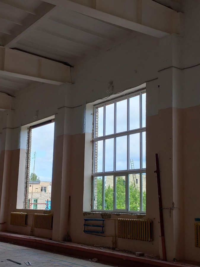 В селе Первомайское демонтировали старые оконные блоки. В данный момент устанавливают новые окна, уже успели вставить 50% блоков. В планах отремонтировать напольное покрытие зала и заменить систему отопления.