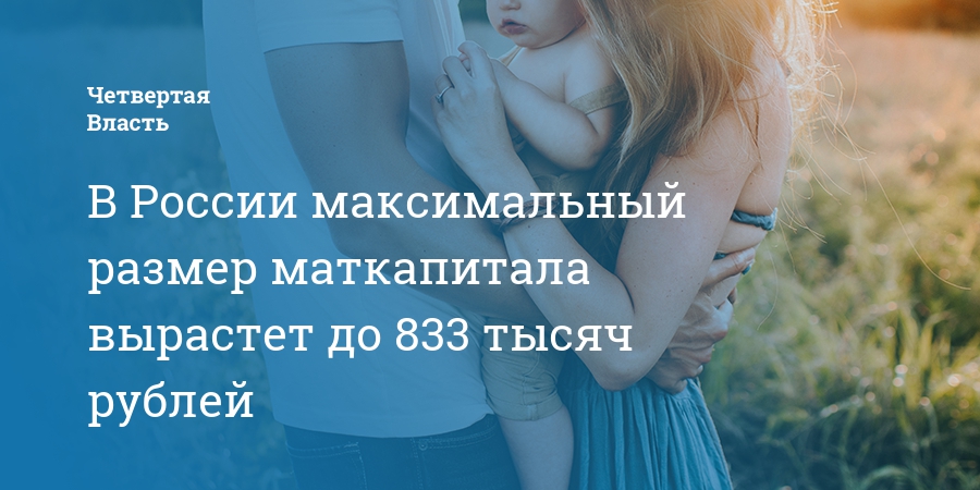В России максимальный размер маткапитала вырастет до 833 тысяч рублей