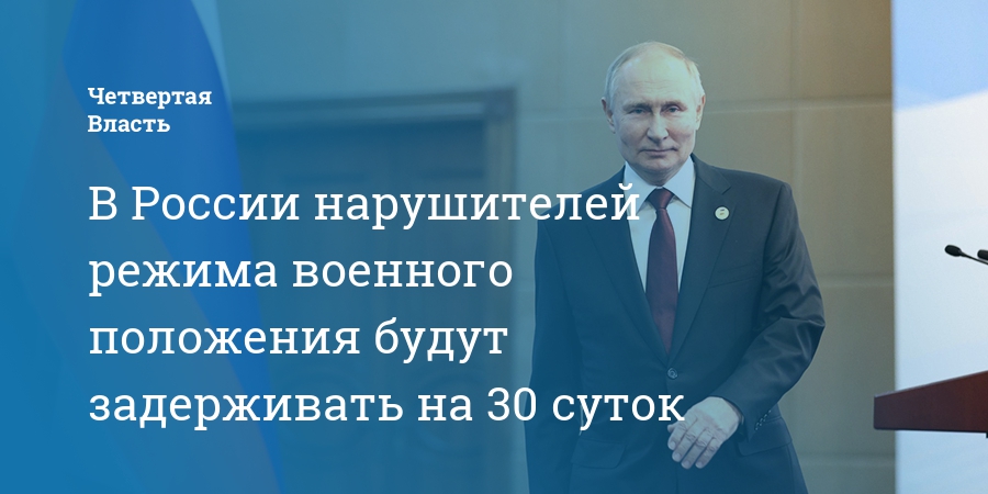 В России граждан, которые нарушили режим военного положения, будут арестовывать на 30 суток. Соответствующий закон сегодня, 24 июня, подписал президент России Владимир Путин.