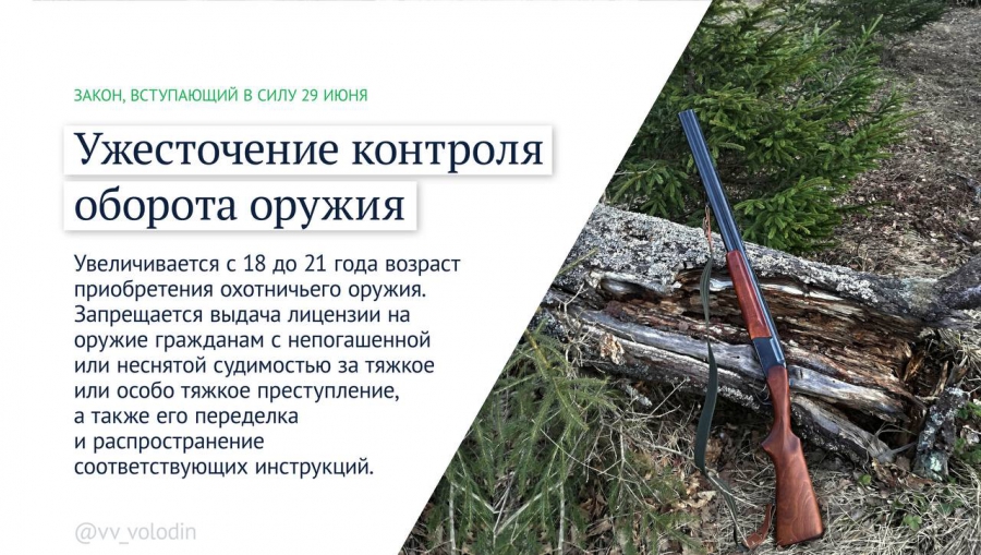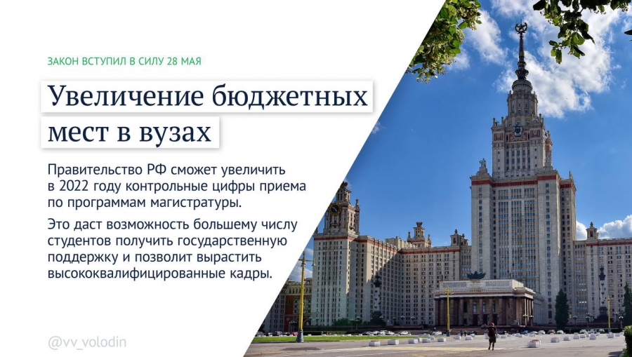 Среди других нововведений: увеличение числа бюджетных мест в российских вузах, введение паспорта болельщика (его можно будет оформить через Госуслуги), а также ужесточение штрафов за лесные пожары и ужесточение контроля за оборотом оружия.