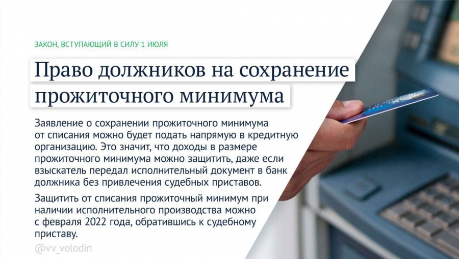 Еще одно нововведение коснется должников. При списании денег на их счету должна оставаться сумма, равная прожиточному минимуму, даже если взыскатель передал в банк исполнительный документ без привлечения приставов. Заявление можно будет подать напрямую в кредитную организацию.