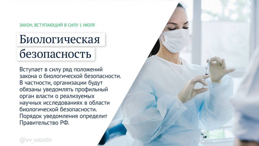 Вступает в силу ряд положений закона о биологической безопасности. Так, организации будут обязаны уведомлять профильный орган власти о научных исследованиях в этой сфере. Порядок определит правительство РФ. Станет обязательной аттестация для гидов и экскурсоводов и инструкторов-проводников. На туристических маршрутах ими смогут быть только граждане России (кроме инструкторов-проводников).