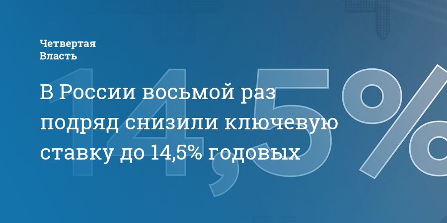 В России восьмой раз подряд снизили ключевую ставку до 14,5% годовых