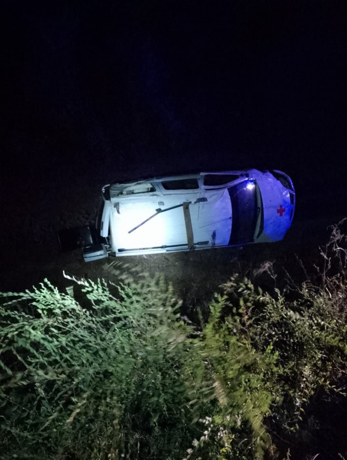 Авария случилась около 21.00 рядом с районным центром. По предварительным данным, водитель 1974 г.р. автомобиля скорой помощи «Лада Ларгус» допустил съезд с дороги с последующим опрокидыванием.