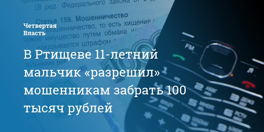 В Ртищеве 11-летний мальчик «разрешил» мошенникам забрать 100 тысяч рублей