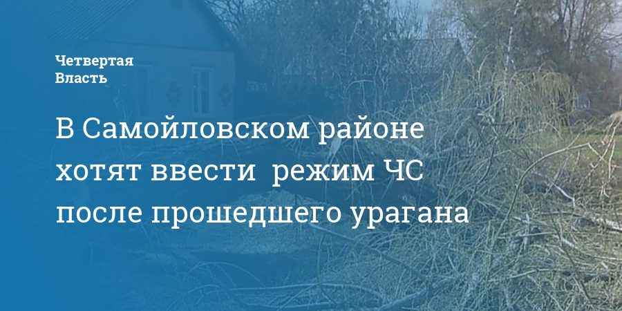 В Самойловском районе Саратовской области после урагана планируют вводить режим ЧС. Об этом «Четвертой Власти» рассказал заведующий сектором по делам ГО и ЧС местной администрации Евгений Приходько.