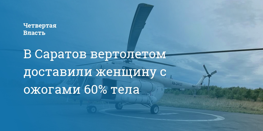 Вчера, 3 октября, из Перелюба Саратовской области 30-летнюю женщину с ожогами вертолетом доставили в Саратов. Об этом сообщает областная клиническая больница в своем телеграм-канале.