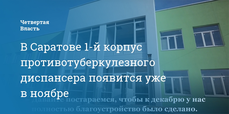 В Саратове первый корпус нового противотуберкулезного диспансера сдадут под оборудование уже в ноябре. Это стало известно во время последнего визита в регион председателя Государственной думы Вячеслава Володина.