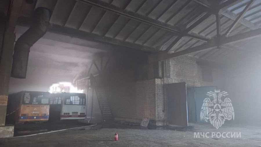 В Саратове 12 человек эвакуировали из-за пожара в автобусном парке