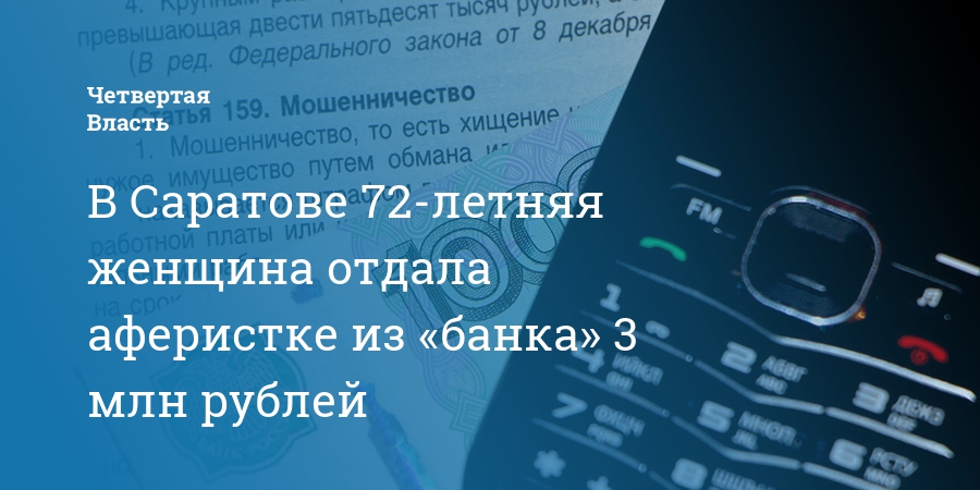 В Саратове 72-летняя женщина отдала аферистке из «банка» 3 млн рублей