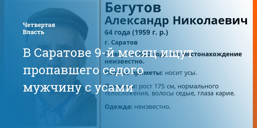 В Саратове 9-й месяц ищут пропавшего седого мужчину с усами
