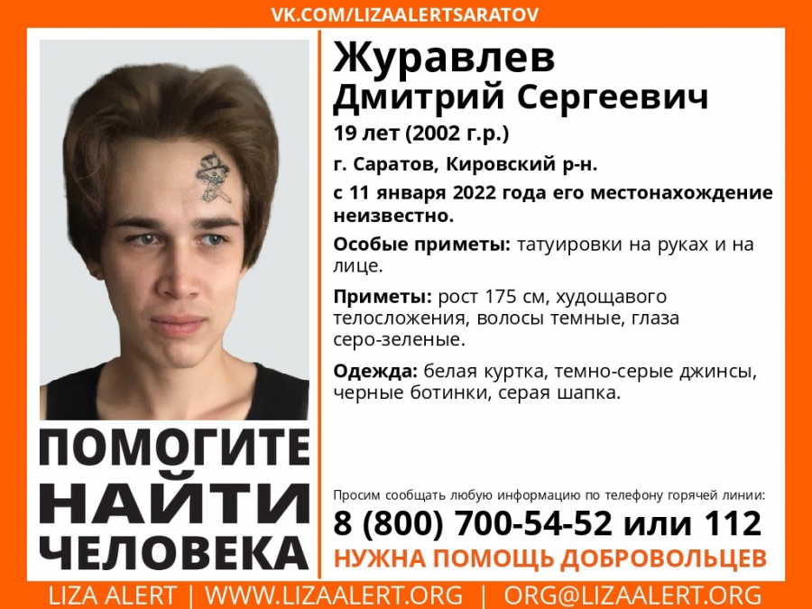 Если у вас есть информация о местонахождении Дмитрия Журавлева, просьба сообщить по телефону: 8 (800) 700-54-52 или 112.