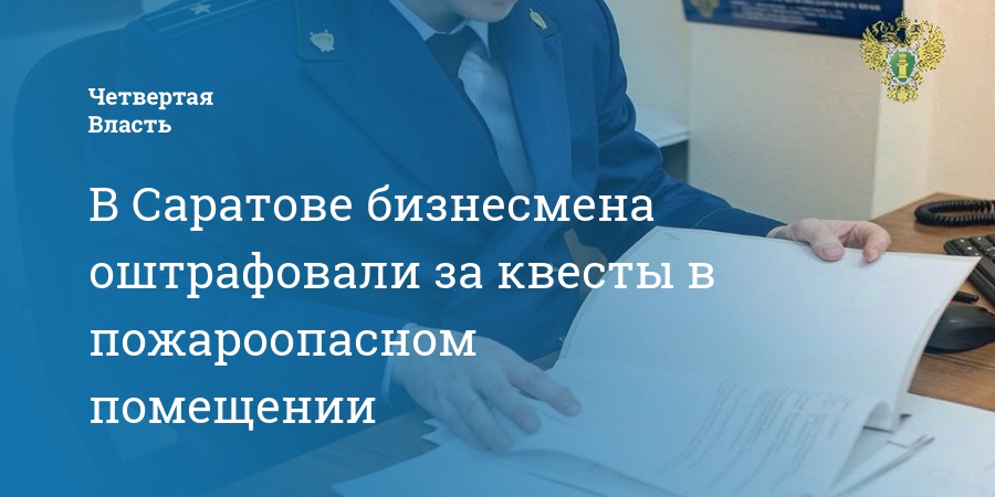 Во Фрунзенском районе Саратова индивидуального предпринимателя привлекли к ответственности за нарушение требований пожарной безопасности в помещении, где проводятся квесты. О назначенном наказании сообщили в пресс-службе региональной прокуратуры.