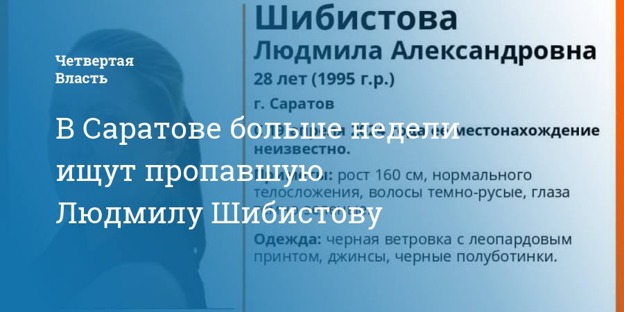 В Саратове пропала без вести 28-летняя Людмила Шибистова. Об этом сообщили в соцсетях поискового отряда «ЛизаАлерт».
