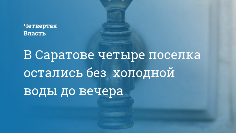 Сегодня, 12 сентября, в Саратове до вечера остались без холодной воды поселки Лотухино, Бартоломеевский, Сторожевка и Малая Скатовка (до 19.00). Об этом сообщает пресс-служба ООО «КВС».