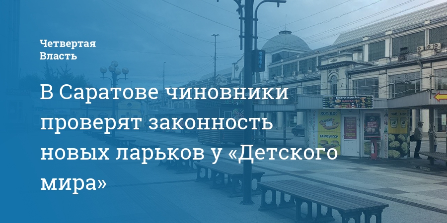В Саратове будет проведена проверка законности торговых объектов, которые периодически появляются возле «Детского мира». Об этом «Четвертой Власти» сообщили в комитете культурного наследия правительства области.