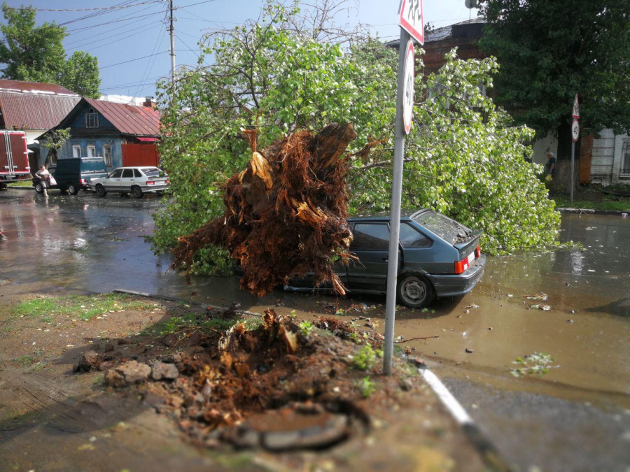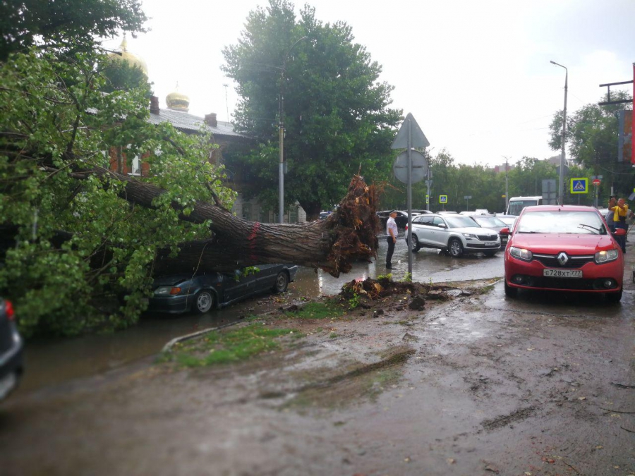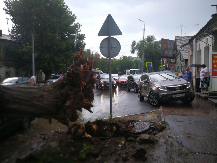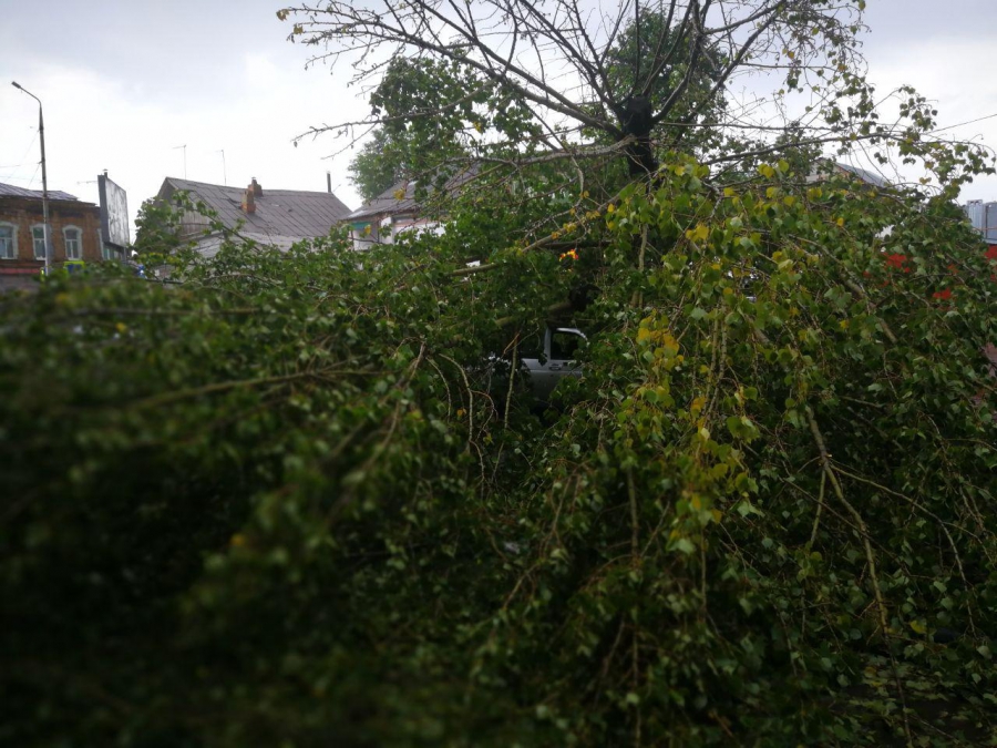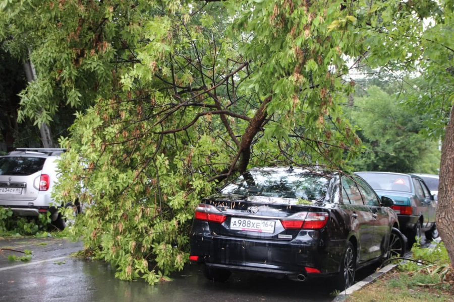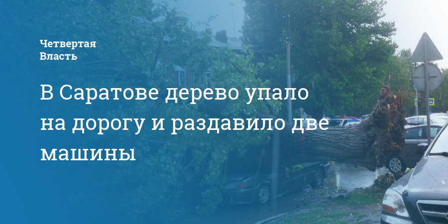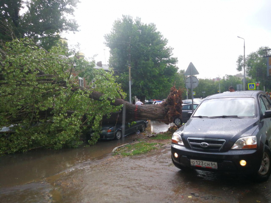 Сегодня, 15 июля, в центре Саратова в результате сильного порыва ветра крупное дерево упало на проезжую часть. По информации «Четвертой Власти», в результате происшествия раздавлены два автомобиля.