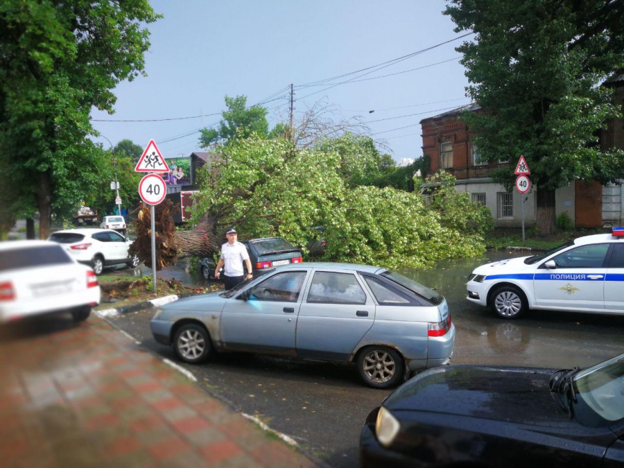 Дерево рухнуло в районе пересечения улиц Большая Горная и Максима Горького. Оно упало, надломившись у основания, причем корни остались в земле. Ствол дерева приземлился на переднюю часть автомашины «ВАЗ-2114», раздавив капот и лобовое стекло. К счастью, водитель отделался лишь царапинами. Кроме того, ветви придавили «Ладу Приору», предварительно, там пострадавших нет.