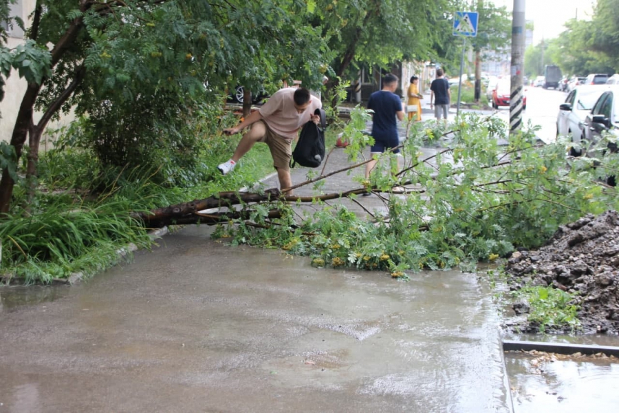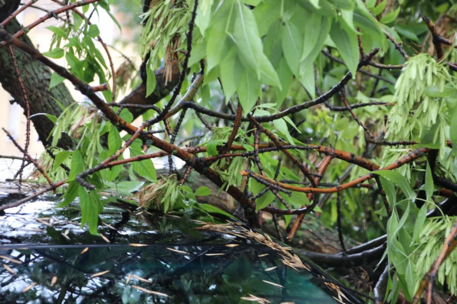 На пересечении улиц Челюскинцев и Соборной владельцу «Тойоты Камри» сравнительно повезло: обломившаяся ветка дерева легла на машину, но серьезных повреждений это не повлекло. Неподалеку упавшее небольшое дерево стало помехой для пешеходов.