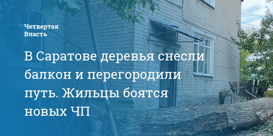 В Саратове деревья снесли балкон и перегородили путь. Жильцы боятся новых ЧП
