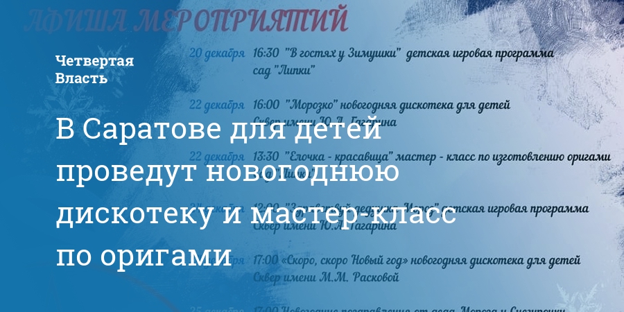 В Саратове для детей проведут новогоднюю дискотеку и мастер-класс по оригами
