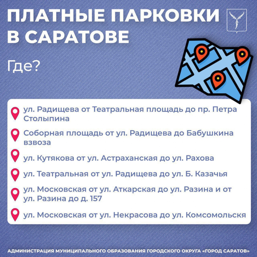 Чиновники уверены, что внедрение платных парковочных зон на некоторых улицах в центре города разгрузит дороги Саратова. Пока предусмотрено 245 машиномест на 10 центральных улицах (всего участков 13):