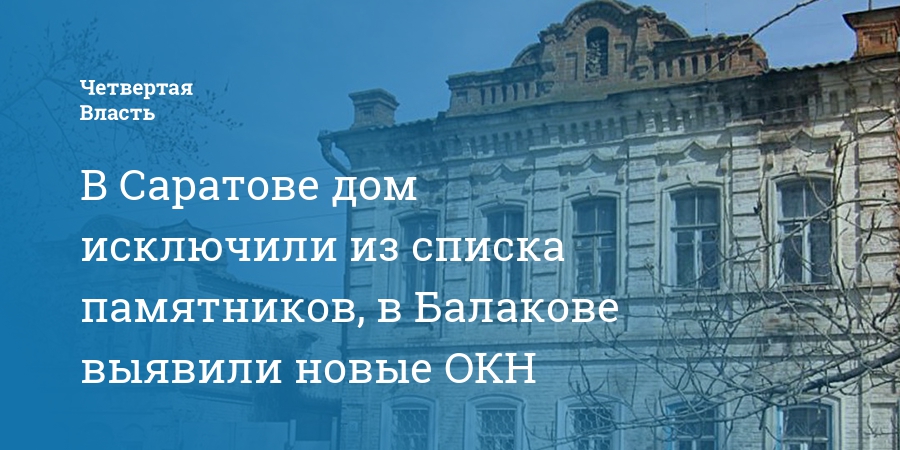 В Саратове дом исключили из списка памятников, в Балакове выявили новые ОКН