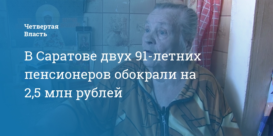 В Саратове двух 91-летних пенсионеров обокрали на 2,5 млн рублей
