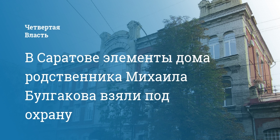 В Саратове здание, в котором бывал писатель-классик Михаил Булгаков (улица Сакко и Ванцетти, 55), получило предмет охраны. Об этом сообщили в комитете культурного наследия области.